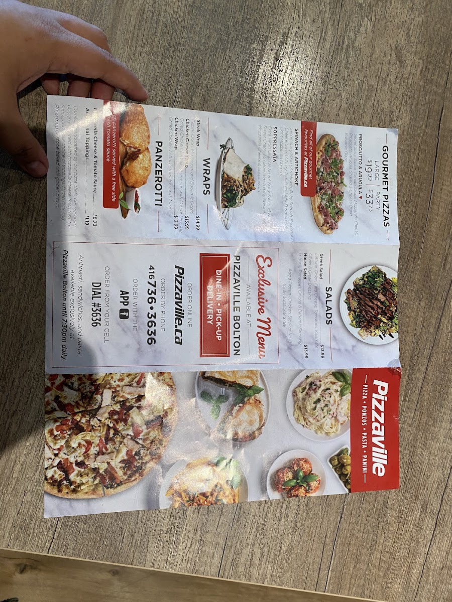 For inquiries or to place an order, reach out at +1 416-736-3636. Indulge in the true flavors of Italy right here at Pizzaville!